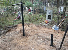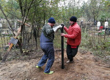 Нам же необходимо было привести территорию могилы в полный порядок. Приступая к работе, мы первым делом вкручиваем определяющие фундамент сваи.